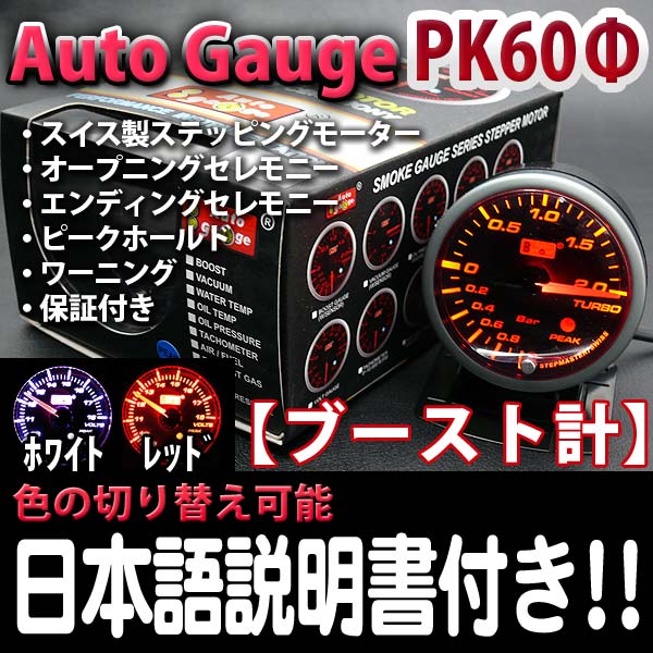 新卒応援セール【ブースト計】【最上級モデルPK60Φ】【レッドLED】【電気式】ピークホールド/オートゲージ価格: 8,200円レビュー評価: 3.6 レビュー数:5 送料区分:Sサイズオートゲージの【ブースト計】最新モデル。オープニングセレモニー付き。スタンドもサービス!日本語の簡易説明書付。●ブースト計とは?ターボのかかり具合がわかり、規定値よりもブーストがかかっていない、ブーストがまったくかからないなどトラブルの発見に役立ちます。エンジンの調子や燃費走行等に役に立ち、アクセルを踏んでいない、少しだけ踏んでいる時の針は負圧側(バキューム)を指します。見た目も針がよく動いて楽しく、機能的で、ターボ車で使用されるメーターです。 ステップモーター60mmブラックフェイスLED発光メーターです。 センサー、スタンド込みの価格です。 ★イグニッションON時にオープ |
